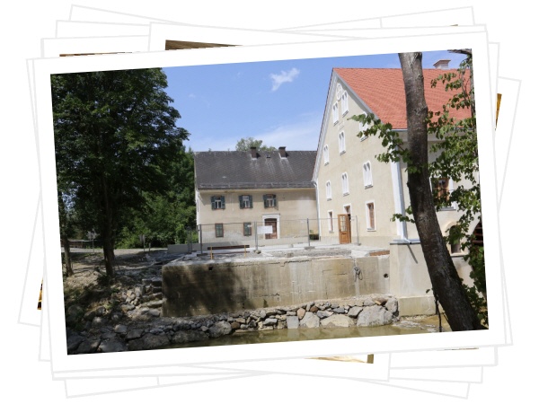 Die bisher bestehenden 5 Mühlräder der Wittmannsdorfmühle wurden durch ein großes oberschlächtiges Mühlrad ersetzt.