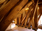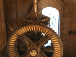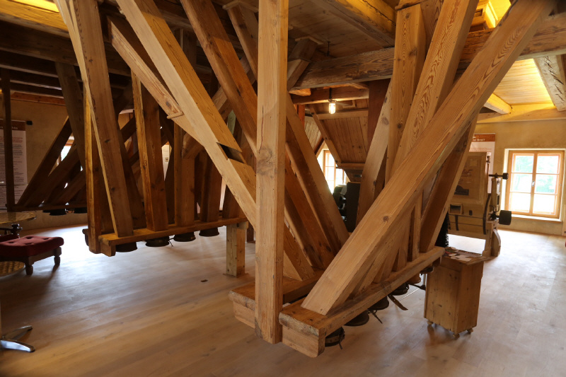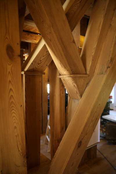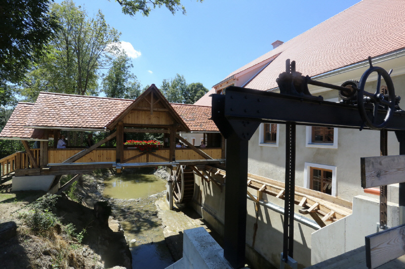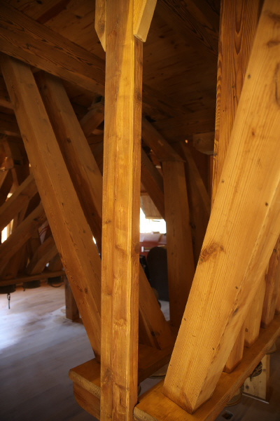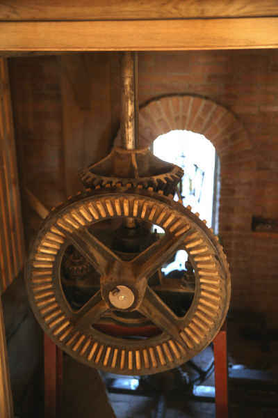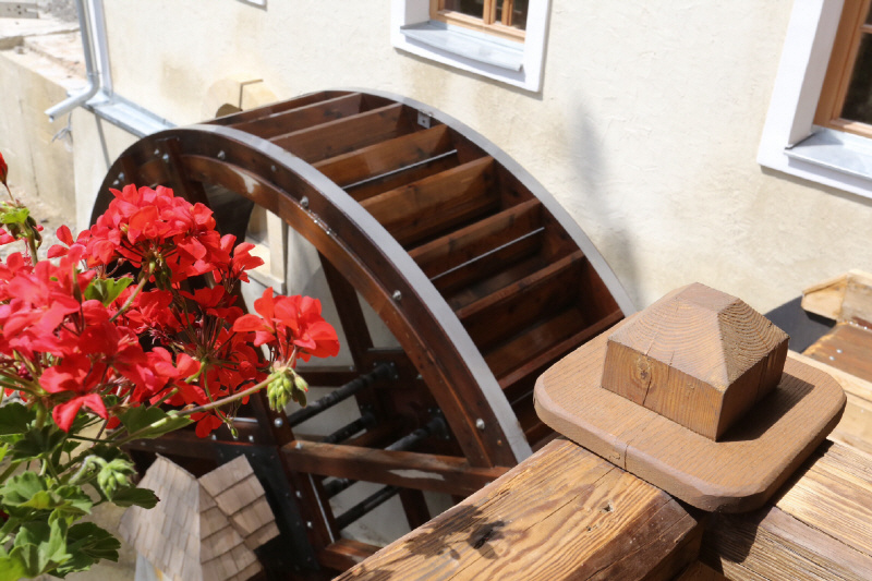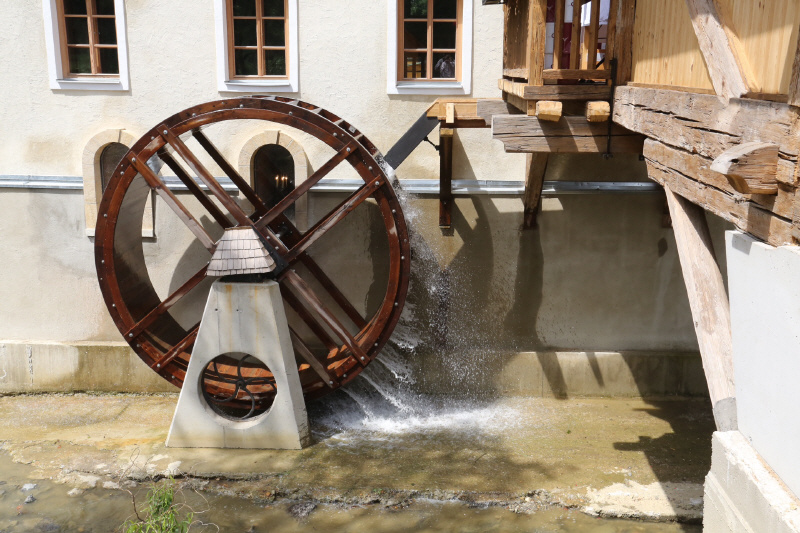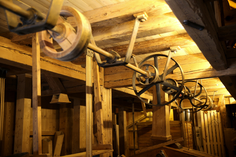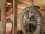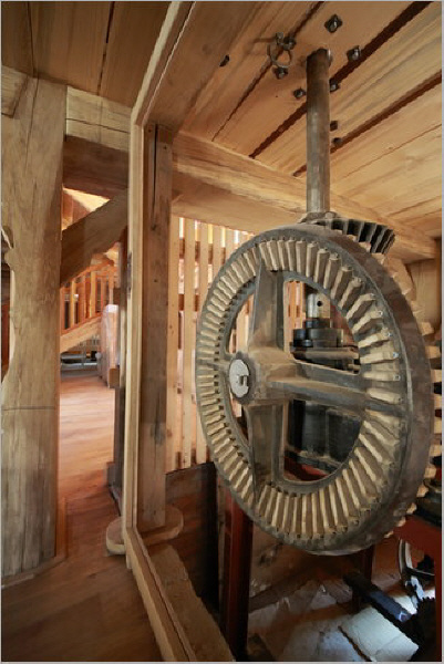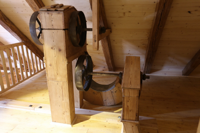 Das Kammrad ist das Getriebe vom Holzwasserrad zum Mahlstein.