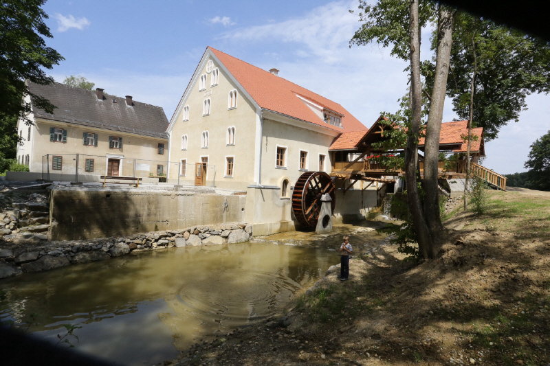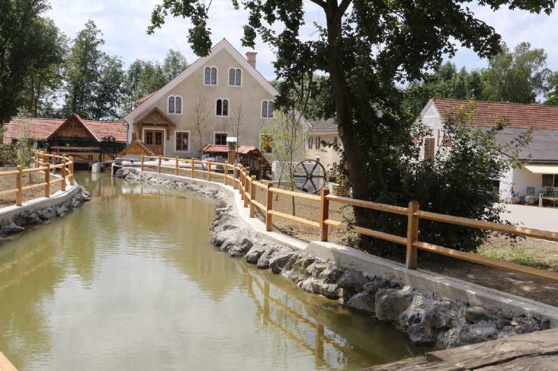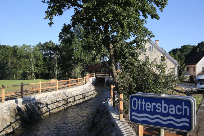 Bei der Ottersbachmühle fließt der Bach direkt auf die Mühle zu, da das Gefälle des Baches gering ist.
