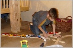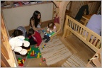 Wir haben dort besonders viele verschiedene Spielsachen für alle Altersgruppen und auch Brettspiele in Körben und Kisten bereitgestellt.