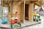 Auf unserer Wiese hinter der Mühle haben wir deshalb ein kleines Kinderspielhaus aus Holz aufgestellt. Die kleinen Fenster, eine Flügeltüre und ein Rundumsteg sowie Laden und Sitzbänke im Inneren bieten für unsere Kleinen eine willkommene Abwechslung.